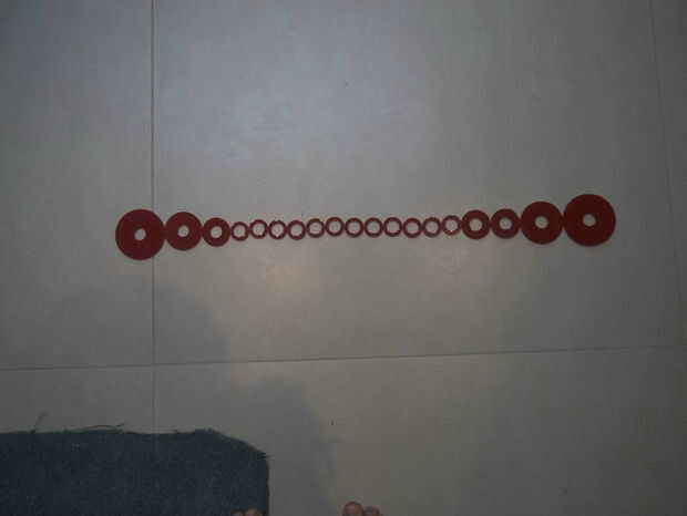 Los anillos se cortan en diferentes formas pero todas tienen un círculo de 2cm de diámetro