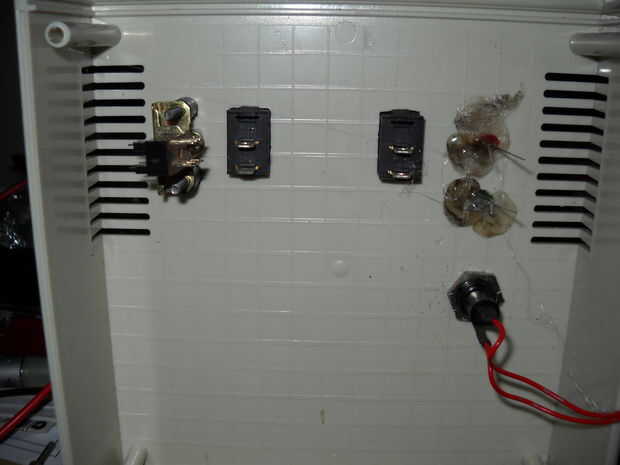 3) taladros y montaje de interruptores, LED, transformador, fusible, Junta cargador y bombilla tomas.