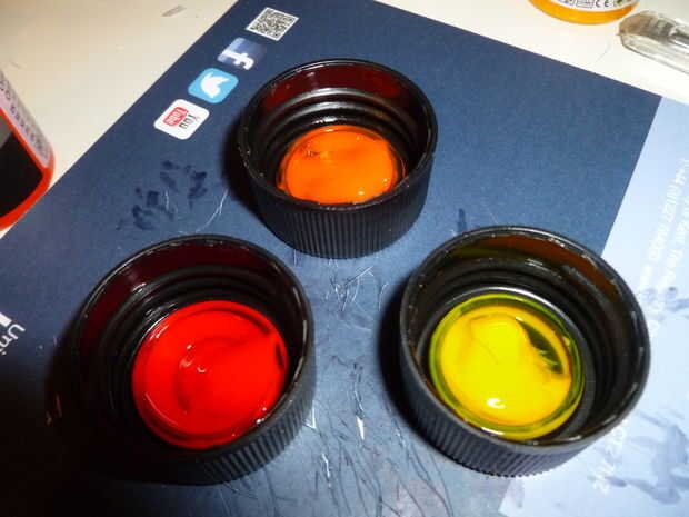 • Utilice el rojo, naranja y amarillo. Esto no es suficiente, tienes que mezclarlos para obtener la sombra adecuada y darle una transición gradual del rojo al amarillo.