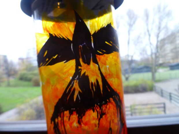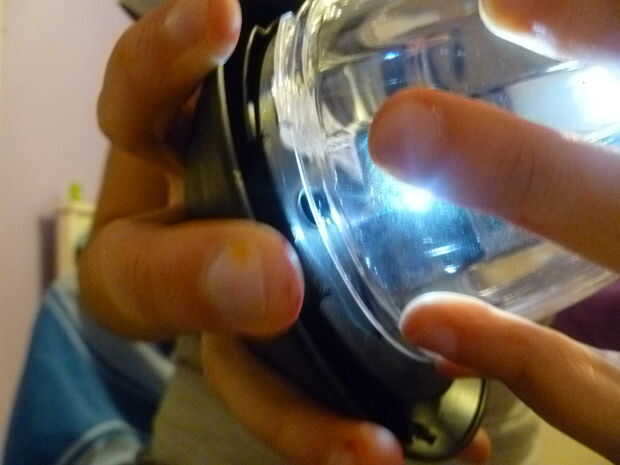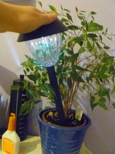 Poner la luz Solar en la parte superior la abertura del vaso/jarra y fijarla. Puede utilizar cinta adhesiva o pegamento caliente o incluso blu-tack.