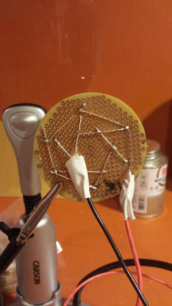 Después de tener el circuito de cableado, poner los cables que vienen desde el circuito a través de nuestra botella y alinear su pcb a lo largo del interior de la botella y he utilizado pegamento caliente para mantenerla en su lugar.