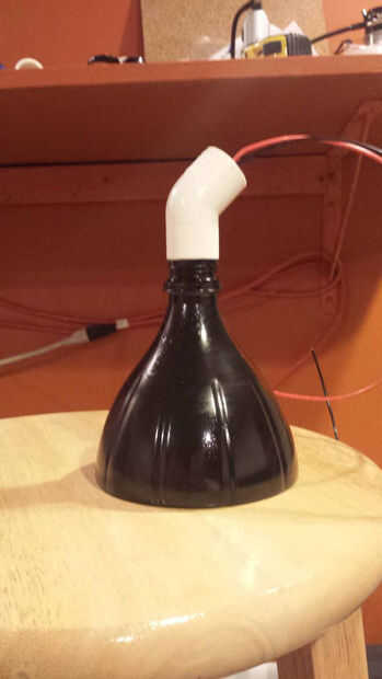 Entonces usted quiere tomar los cables que corrimos a través de la estructura de la lámpara y los cables que sólo a través de la botella y soldarlos juntos. Después de que soldarlos juntos, tienes un montón de alambre de repuesto. Para solucionar este problema, simplemente tire del cable desde el otro lado de la lámpara (donde va la pila) hasta que no haya ningún extra, alambre sólo que está dentro de la lámpara. Después de ello, usted puede poner la lámpara detrás juntos.