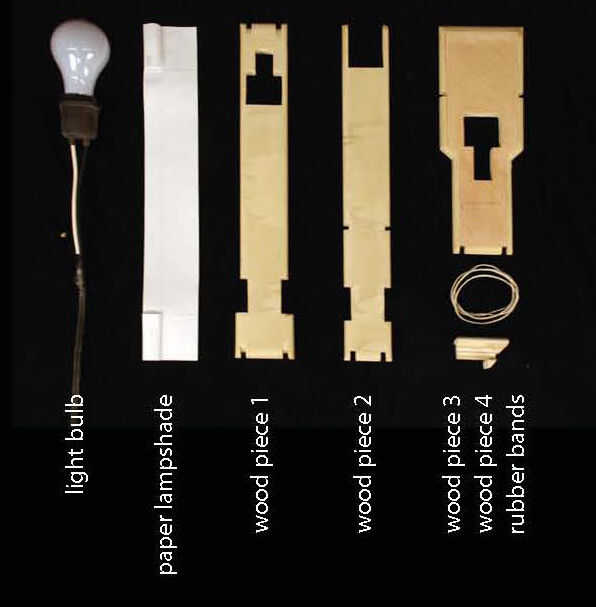 Cortar los trozos de madera, en una sierra de cinta si eres perezoso, y con la mano si eres realmente duro sobre ella. Madera 4 es una pequeña pieza que encaja en la pieza de madera 3 despues todo se hace para limitar el rango de movimiento de la lámpara
