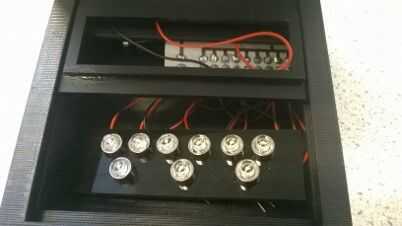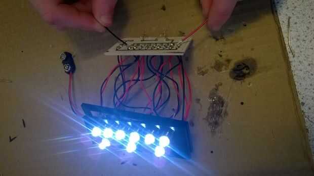 para completar esta tarea, ordené 9 ultra brillante LED luces de Kitronic junto con 9 cromo LED soportes para añadir más estética al diseño. en primer lugar, puse todos los LEDs en sus titulares y empezó a pelar los cables. una vez hecho esto, soldamos los LEDs al cable rojo y negro. asegurándose de que ellos estaban correctos que usé una resistencia de 330R y una batería de 9V. después, soldado la resistencia a la placa junto con el LED y la batería rápido. He dejado dos espacios para el interruptor, como no tengo uno en este momento. Cuando llegó yo solía el soldador y algunos alambres más largos Coloque el interruptor en el PCB. Luego inserté el circuito dentro de la carcasa luz asegurándose de que nada consiguió atrapada o dañada.