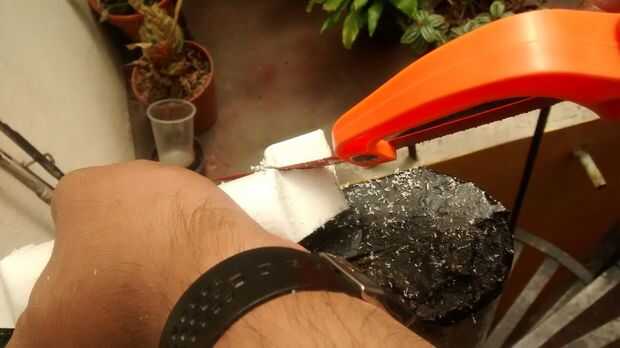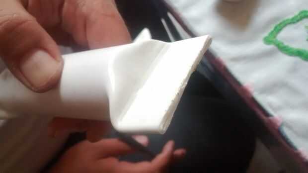 Con una llama baja, mantenerlo unos 20 segundos girando y luego, utilizando el borde de la encimera y un disco duro, pulse el PVC para cerrar la brecha y obtener un borde recto.