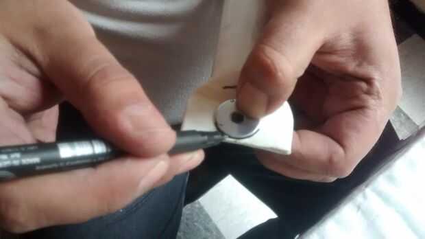 Espere unos segundos hasta el frío y poner una arandela sobre el PVC plano, para marcar el agujero en el centro y el uso del exterior para hacer la curva del borde.