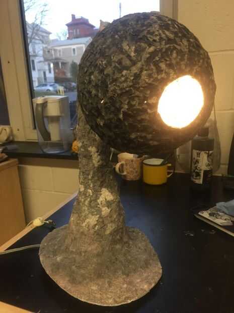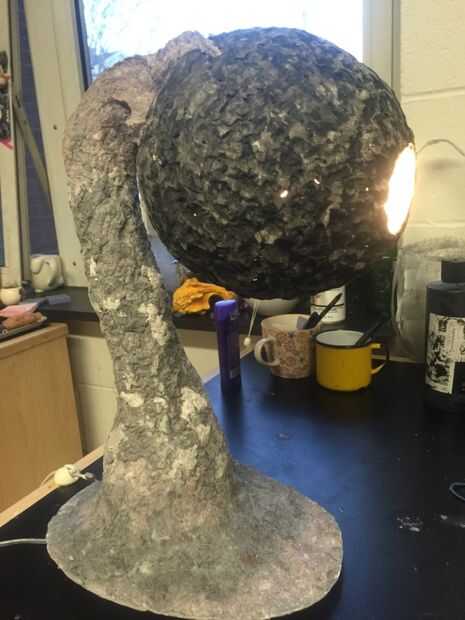 Una vez que la luz se instala en la Unión del accesorio las piezas con más papel de la pulpa en cualquier diseño deseado, apoyar la pieza para secar (para que el bulbo es elevado y puede secar la pulpa para sujetarlo) y deja reposar durante al menos 8 horas para secarse.