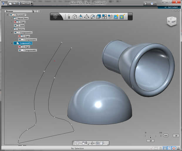 Para convertir la sección en un objeto 3D, usé la herramienta de revolución . Esta herramienta gira un perfil alrededor de un eje de su elección, producir un objeto con simetría rotacional.