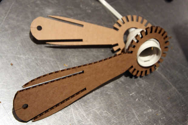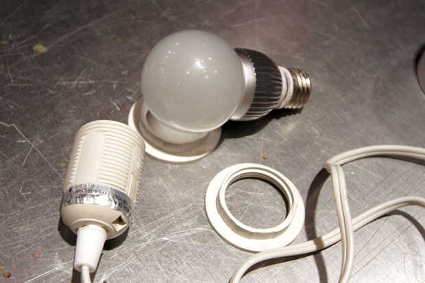 Para mi lámpara, comencé en el centro de la pantalla y mi camino hacia fuera, incluyendo el accesorio de iluminación desde el principio. Compré el accesorio de iluminación premontado en una ferretería local, por lo que no tengo que hacer alguna soldadura o cableado para conseguirlo para trabajar de forma segura.