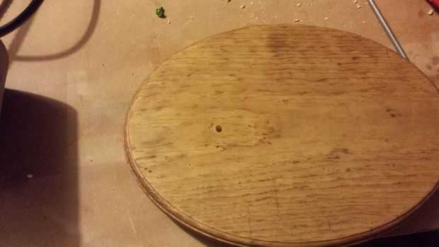 Luego perforar un agujero en la base y ajustaron en algún tornillo para fijar una base para dar al proyecto un aspecto acabado de madera.