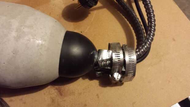 Para reunir todo lo usé abrazaderas para ir alrededor de la varilla y colocar todo junto. Me perforó un agujero en un tapón de caucho y rosca el cable aunque la sombra y luego el tapón para que no se dañaría el cable apretando las abrazaderas. Después de asegurarse de que no tengo que tomar aparte os adjunto el enchufe con los cables.