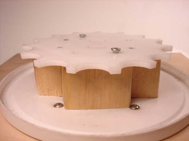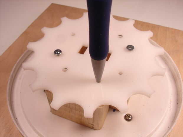 Para que el bloque superior para alinear con la placa media, llevó puesto debajo de la media placa para trazar los orificios. Después que hice líneas y cuando por la mitad.