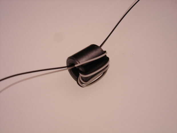 Empezar por torcer dos hilos juntos. Luego pasarlo en el grano de la ferrita y se enrolle en el grano hasta que físicamente usted no puede pasarlo más. Usted acaba de hacer usted mismo un transformador pequeño.