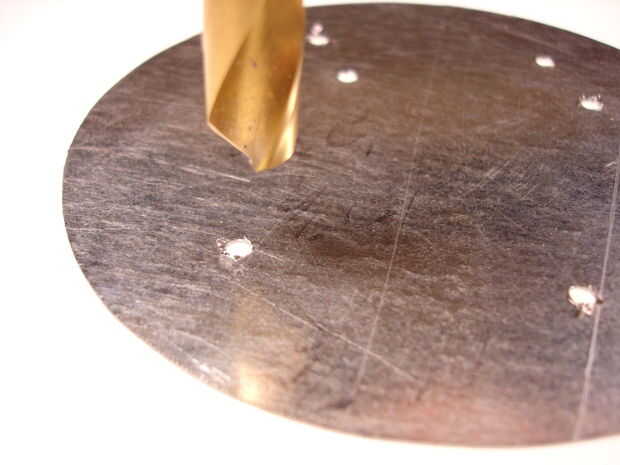 Yo uso un punzón de metal para marcar donde quería los agujeros. Esto le ayudará a centro de la broca durante la perforación.