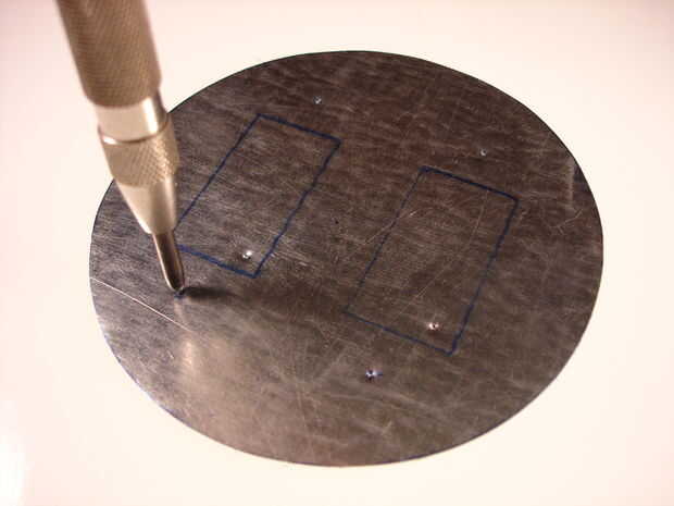 Podría utilizar un clavo afilado y un martillo para marcar el metal en lugar de utilizar un punzón de metal.