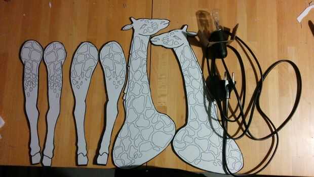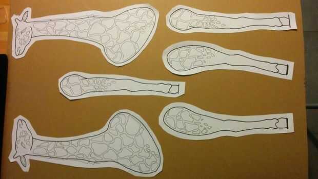 2. Retire todas las piezas de la jirafa de caja de la mesa.