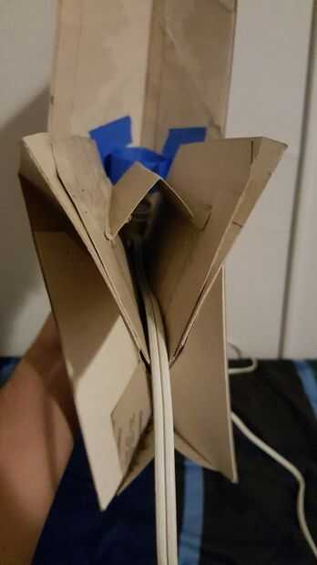 He añadido un trozo de papel para ocultar el cable y añadir un poco más de estabilidad. Este paso es opcional, pero si sientes que tu lámpara se beneficiará de esta continuación, añádala.