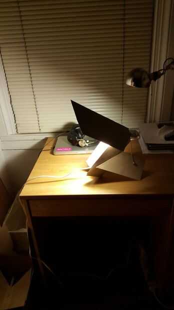 cartón podría parecer como un material extraño para una lámpara de escritorio, pero con una bombilla de LED de bajo calor esta lámpara 15" puede brillar toda la noche en estilo glorioso creador. Es luz, es resistente y de plano-embale. ¿Lo que no es