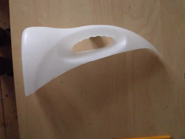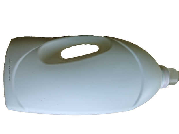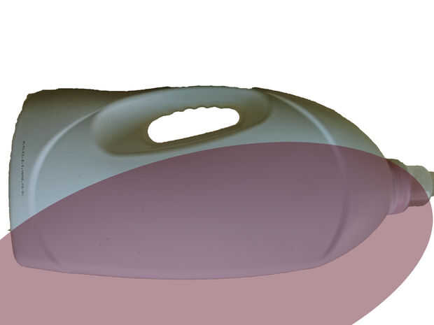 Esto fue una gran botella de detergente de 4.5 litros. Echa un vistazo a las fotos y averiguar pedazo de bruja se necesita de la botella grande. Hundir el extremo puntiagudo de las tijeras de y empezar a cortar. Debe resultar en una línea limpia de arco. El resto de la botella no se utiliza para este proyecto.