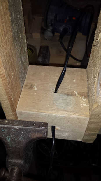 No quiero el cable para ir en recta y el bloque, en cambio, en medio de un lado taladré un agujero y en la parte inferior. Tal vez se puede ver mejor en las fotos.