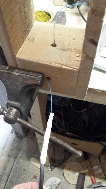 Usé un cable de guía pequeña para tirar el cable a través. Fue muy difícil de administrar porque tuvo que hacer una esquina dentro del bloque