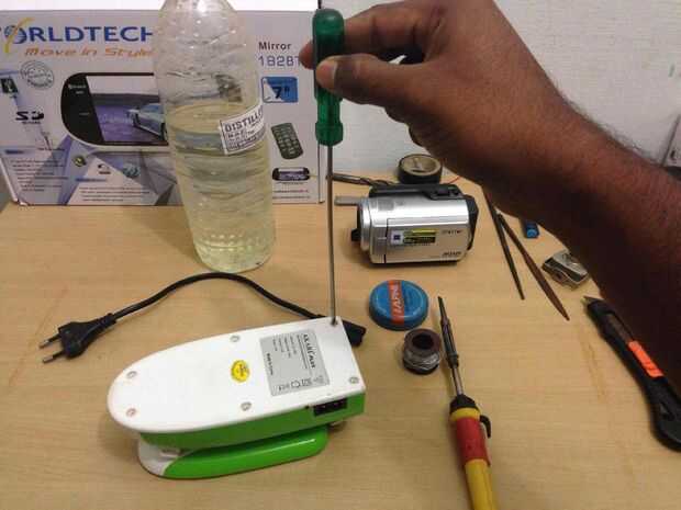 Esta lámpara de escritorio totalmente reciclado hace una declaración mediante la transformación de materiales desechados en algo útil, lo que es fácil de recrear esta lámpara sin gastar un centavo. Piezas de repuesto de lámparas y electrónica desecha