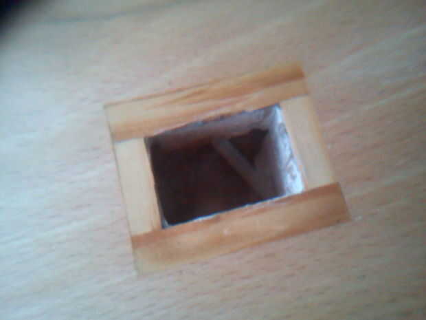 Se trata de una lámpara que he hecho con restos de madera encontrados en la basura, entre otras cosas. Estos incluyen las barras de un marco de madera, listones de madera y un board de masonite. La fuente de luz proviene de una señal de salida trashe