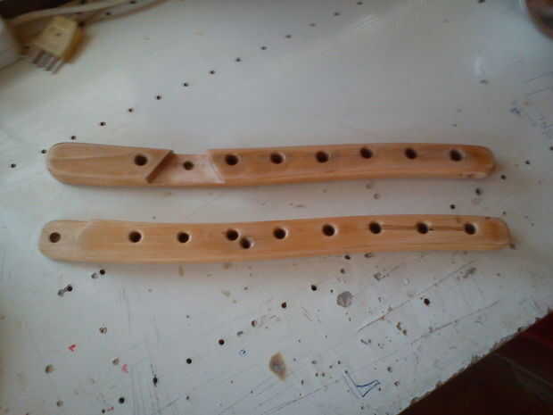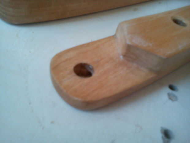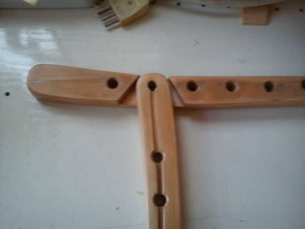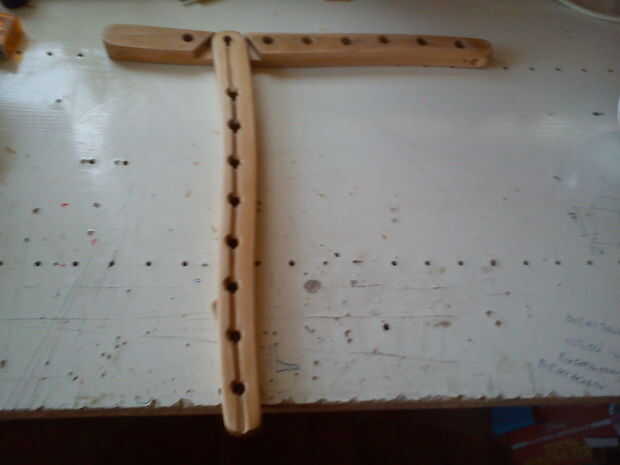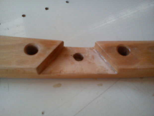 Hacer la hendidura lados1 y 2 de fotos. La profundidad del hueco es la mitad del espesor de la madera. Usé Sierra, cincel y archivo.
