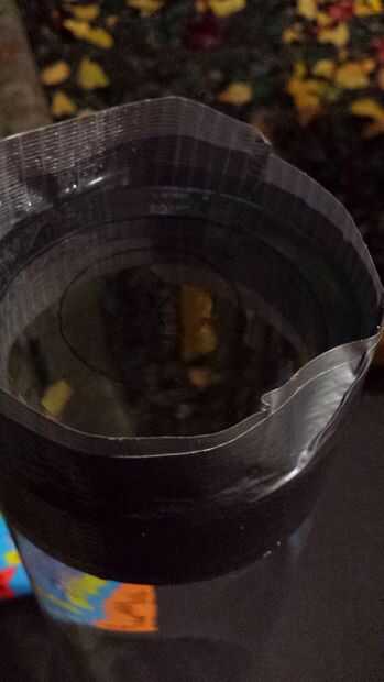 Envuelva la cinta alrededor de la base dejando suficiente pegándose para arriba más allá del borde para formar un embalse. Vierta agua en el depósito de... taladro.