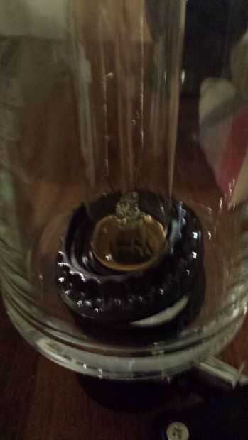 Coloque el mango de la lámpara a través del orificio recién cortada en la base del cilindro y apriete la tuerca o collar roscada. Otra vez, limpie cualquier dedo impresiones/manchas en el cristal. Atornille la bombilla en el zócalo.