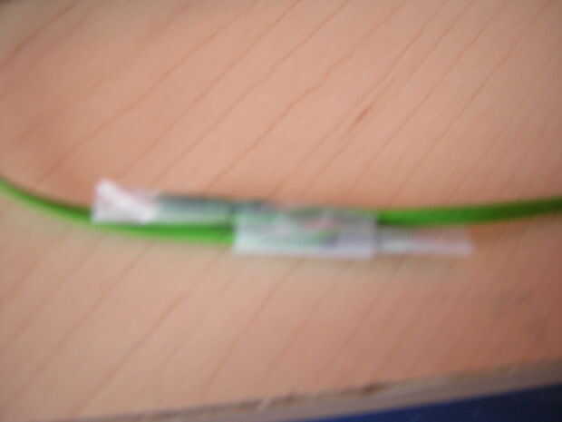 Para proteger y evitar que los cables de tocar (un corto), envuelva cada uno en cinta y doble sobre y aplique cinta de más, por lo que los cables no pueden deslizarse aparte. (véase los cuadros)
