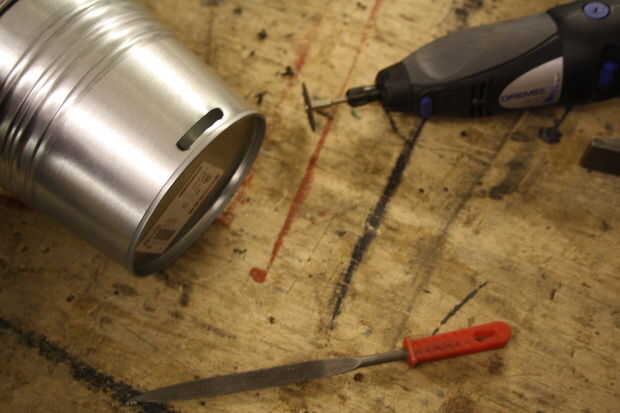 Para poner en orden y que el orificio grande suficiente utilicé un disco de corte Dremel. Cuando se utiliza el disco de corte asegurar que use gafas de seguridad como los discos puede romperse o lanzar pedazos de escombros! Luego usé un archivo para quitar las rebabas y para quitar todos los bordes afilados.
