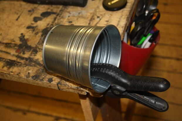 A continuación debe preparar la base de la lámpara que hice de un macetero galvanizado. Es importante tener en cuenta que el pote de la planta que utiliza es metal y por lo tanto conductor. Por esta razón de importante Asegúrese de que usted haga una ranura lo suficientemente grande como para conseguir el cable Micro USB 5V sin cualquier parte de la Junta de arranque tocando las partes conductoras de la maceta.