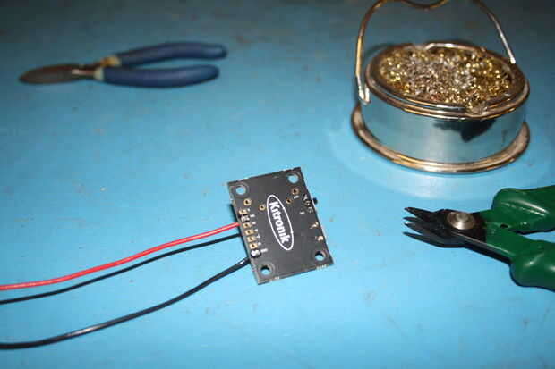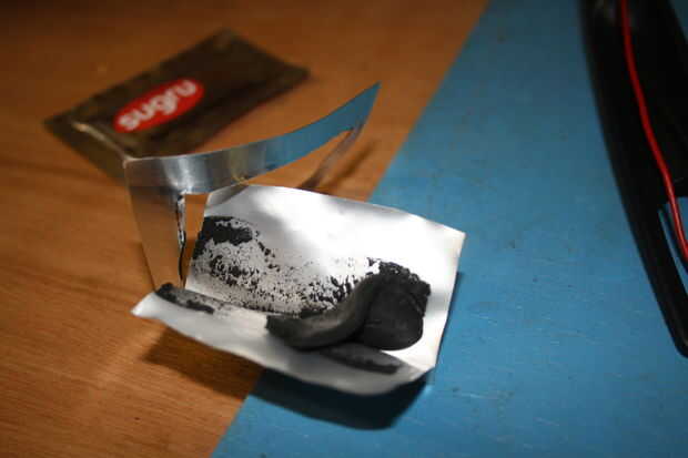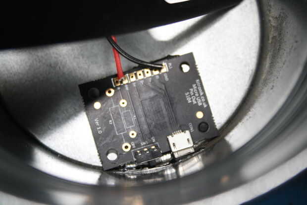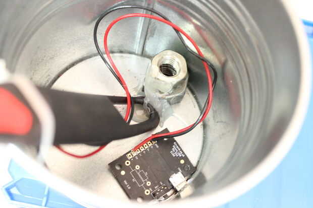 Una vez que has conectado la placa de arranque USB puede agregar algo de peso para asegurar que tu lámpara no vuelque. Utilicé algunas tuercas de robar grandes que tuve que patear y caliente pegado en, pero podría usar sugru en su lugar. Yo también posicionar mi cucharón y caliente lo pegan en su lugar.