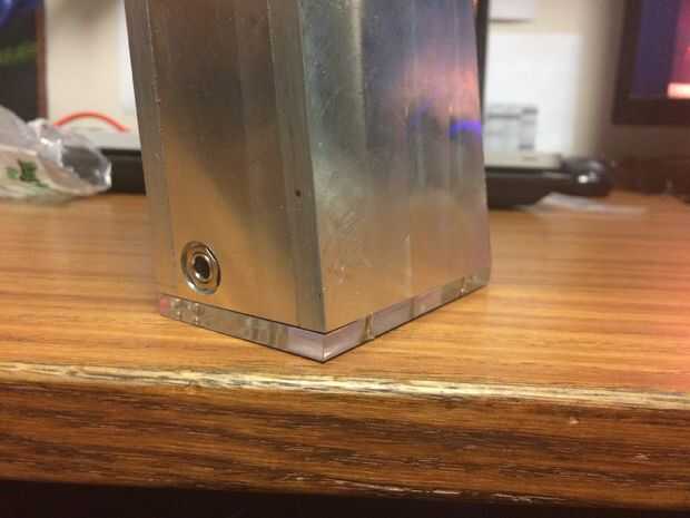Este paso consiste en láser corte dos pedazos de acrílico para la base y parte superior de la lámpara. Para la base, use un trozo grueso 1/4" o 1/8" de acrílico y laser cortado en un rectángulo para la parte inferior de la lámpara. Asegúrese de que crear 4, tamaño correcto a través de orificios para los tornillos de su 4 bronce. Como se muestra arriba, estos tornillos se fije en los 4 agujeros roscados en el montaje de la base.