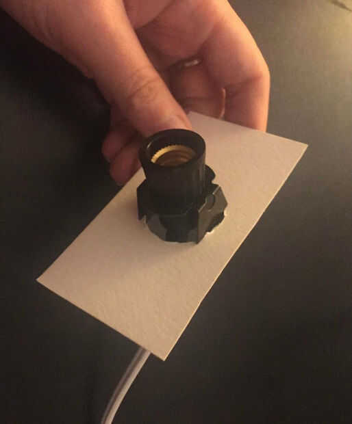 Ahora es el momento para agregar la luz. Esto incluye la toma de fijación dentro de la casa de la bombilla y adherir el cable a la pata de apoyo más.