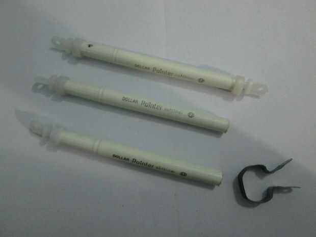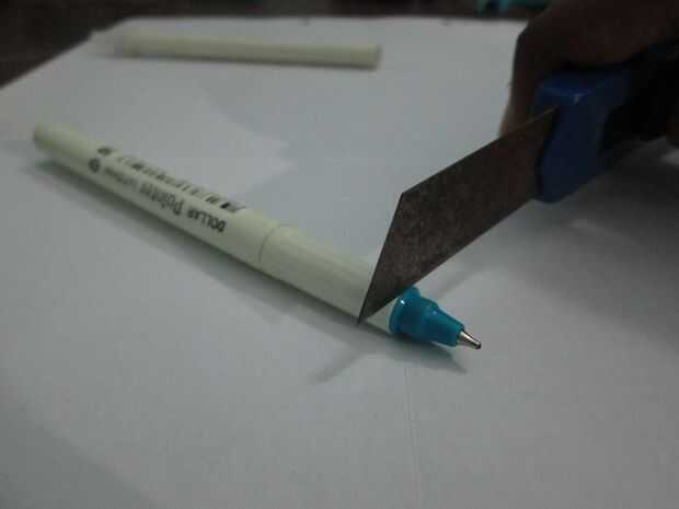 • Tome una pluma de punta de fibra (que se refiere como una pluma de ahora en adelante) y corte el área alrededor de su punto de pluma.