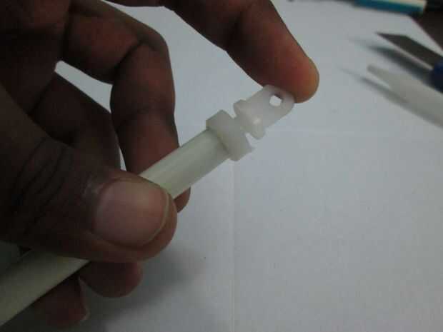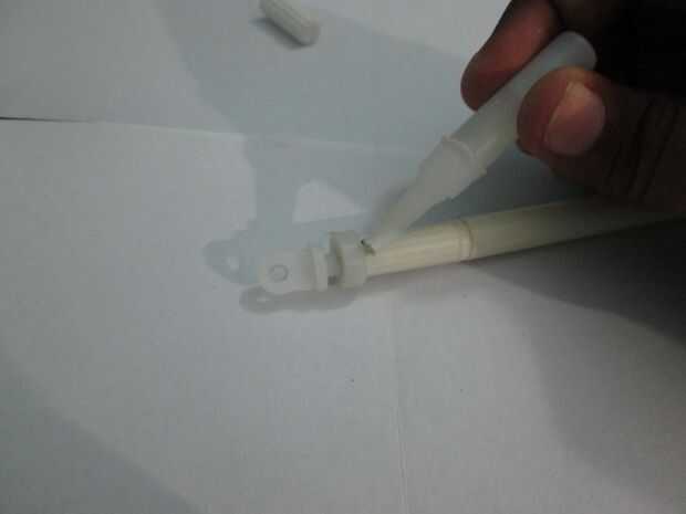 • En la tercera pluma, fijar un corredor o una pieza de plástico en el otro extremo y pegar también.