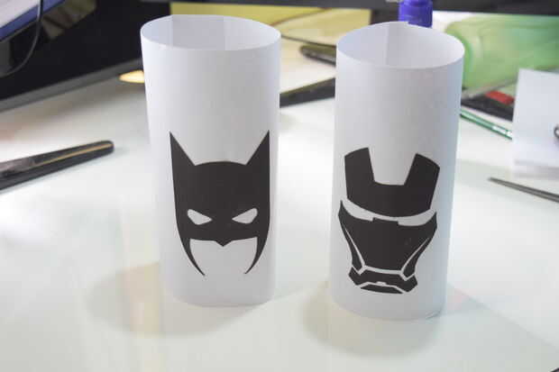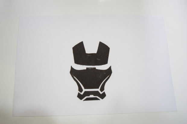 Ahora poner el plano del papel y el pegamento la silueta que ha creado en el centro de la longitud del papel. Puede alinear su silueta sobre el papel primero antes de pegarlas para obtener el diseño correcto que se prefiere. Después de pegar la silueta utilice el contenedor de referencia otra vez para cualquiera de los dos extremos del papel blanco del pegamento.