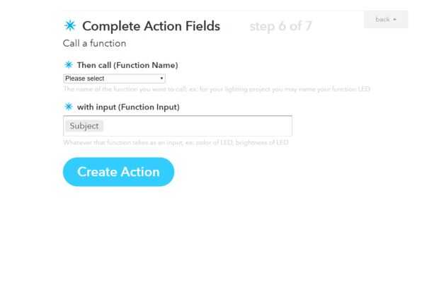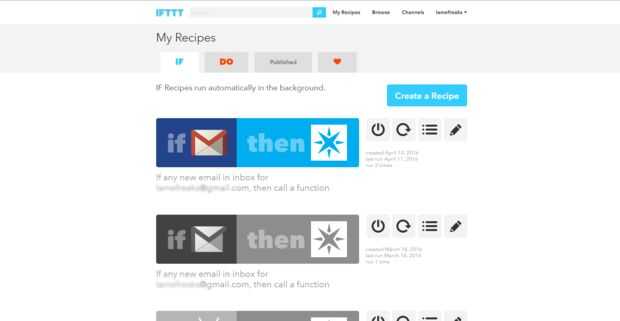 Después de agregar algunas funciones es ahora tiempo para ejecutar o llamar a las funciones cada vez que tienes una notificación nueva. Para agregar la funcionalidad que usando una receta IFTTT. Para crear tu propia receta necesitará crear una cuenta en IFTTT y haz la cuenta conectada a su cuenta de partícula.