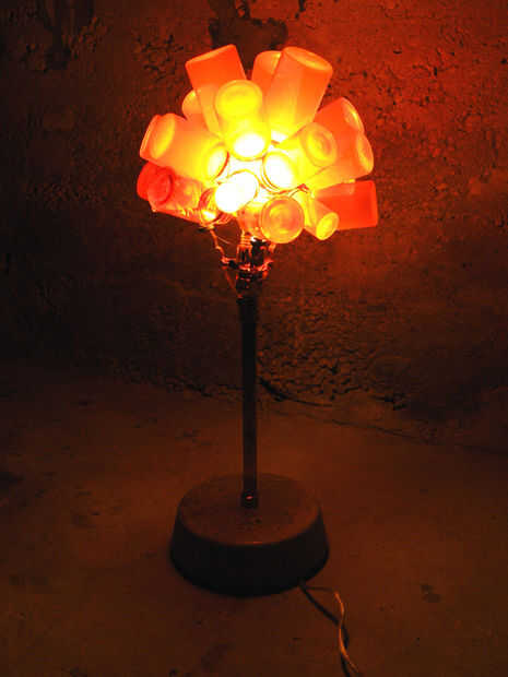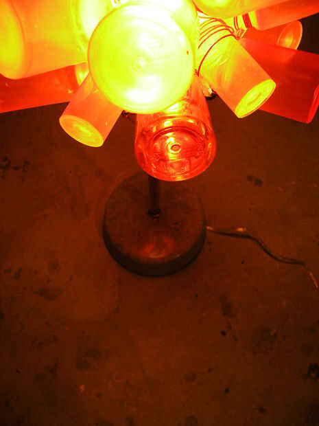 He hecho otra lámpara de botella de píldora que se puede ver aquí: que uno es más rígidamente geométrico y utiliza LEDs.