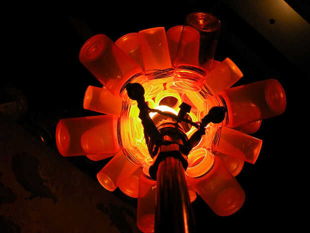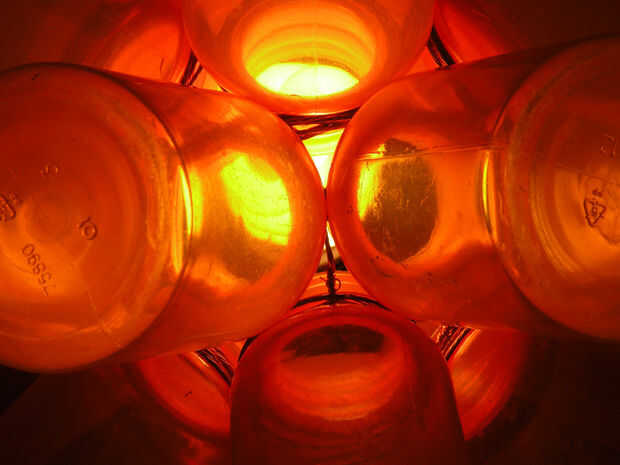 Esta lámpara no es la más rápida hacer, pero si no se cuenta todo el tiempo ahorrando hasta botellas, el tiempo de construcción es tan sólo unas horas. El material cuesta, dependiendo de lo que tienes que poner y otra vez, no incluyendo los costos de las recetas, es de veinte dólares. Si no tienes suficientes amigos y miembros de la familia en la medicación para recoger 24 botellas, luego preguntar en el local de ancianos u hospital. Esta lámpara fue hecha sobre todo de botellas grandes de suministros de varios meses; sin embargo, tejió en algunos otros tamaños. La técnica básica de construcción de la cúpula puede utilizarse en otros tipos de botellas, así como tienen un cuello más estrecho que el cuerpo, y esperemos que con hilos para mantener el alambre de cobre une a los.