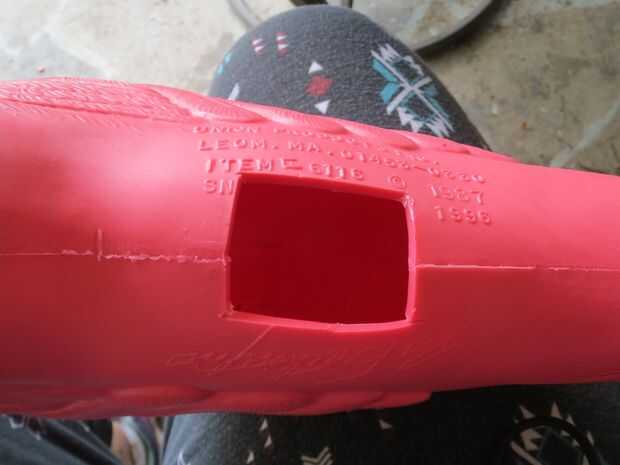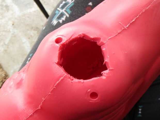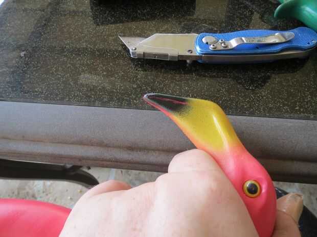 Usted tendrá que dividir la parte inferior del flamenco desde la punta de su pico hacia el agujero que hiciste para el poste luego hasta el agujero de acceso que usted hizo. Usted también necesitará algún tipo de orificio de acceso para el cableado venir a través.