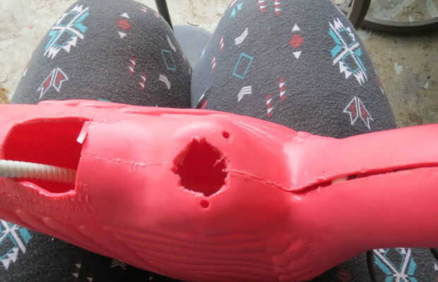 Pensé podría ser capaz de empujar solo la parte de la lámpara llevada hasta el cuello pero fue demasiado amplia. La ilustración (mal dibujada) muestra cómo la lámpara sólo es empujada a través de la parte inferior. No es la manera más limpia pero funciona.