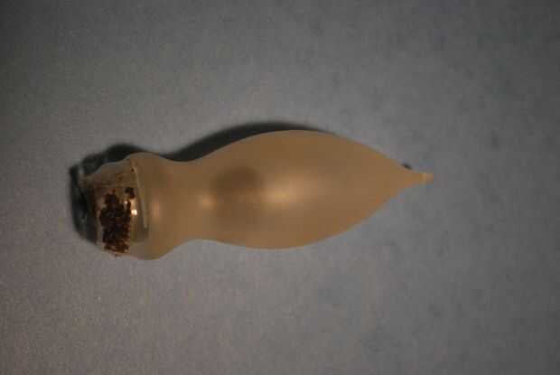 He encontrado que este tipo de bombilla es notorio para el suelta de la base de vidrio. Cuando cambio de quemado de bulbos, a menudo terminan separando de la base si no desenroscar con cuidado. Por supuesto, el que utilicé para este proyecto era todavía bien cementadas a la base. Para separar el vidrio de la base, me parece que sostiene la bombilla y moviendo cuidadosamente la base es suficiente para aflojar el cemento. (Recuerde guantes y protección para los ojos!) Si no es así, machacando el vidrio con el conector del centro al final de la base con pinzas es generalmente suficiente para aflojar cosas.