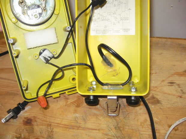 Una vez que los cables están conectados a la toma de tornillo de la toma de la base en la parte superior del cuello de la lámpara y pasar los cables a través del cuello de la lámpara y en la carcasa del medidor. Con que presión de la cubierta de la toma en su lugar.