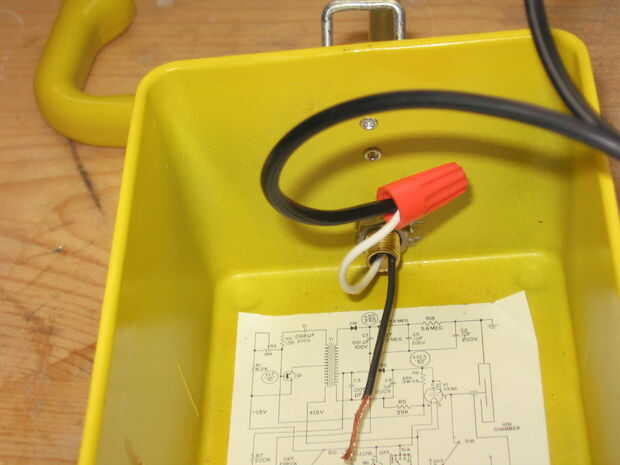Ahora tira de los extremos de su cable de alimentación y alimentación a través del orificio en la parte posterior del medidor. Gire el cable blanco neutro y el neutro en el cable de alimentación con una tuerca de cable. (En el típico cable de dos hilos se pueden saber los cables apartes por su textura. El conductor neutro tendrá aislamiento con una textura áspera y el hilo será suave). Con la torcedura del hilo neutro terminado junta el hilo desde el cable de alimentación del interruptor y cables con una tuerca de alambre. Entonces tuerza el cable del interruptor y el hilo caliente del enchufe. Ahora debe tener un circuito completo. Enchufe la lámpara, girar el interruptor y ver qué pasa. (Si quieres un poco de drama cursi decir "Hágase la luz!" en su mayoría deidad como voz).