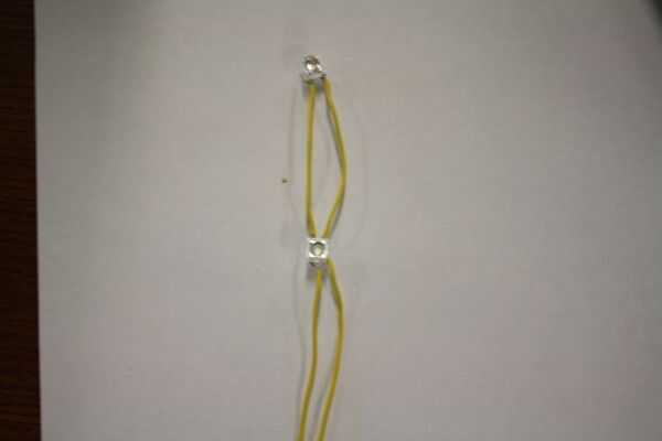 Cambiar el timbre con cuatro LED, usando los ocho pedazos de alambre, cada extremo de la tira y estas se utilizarán para hacer dos líneas paralelas que conectan cada uno de los LED, asegurándose de que usted consigue los lados positivos y negativos de lo LED de la manera correcta de ronda. (Imagen 1)