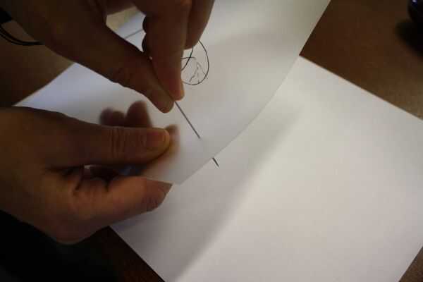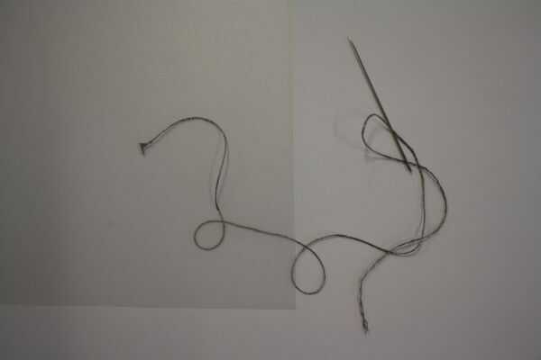 Haga un nudo en un extremo del hilo y utilizando una aguja hilo por el agujero. (Imágenes 3 y 4)