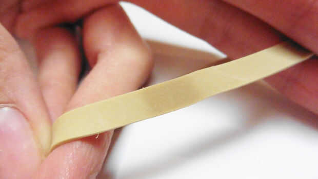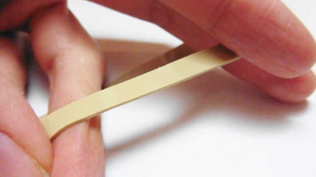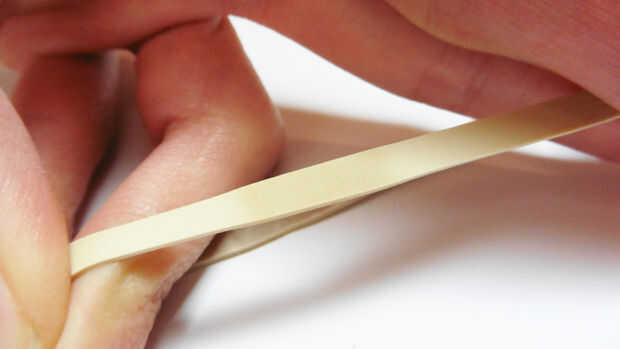 Extienden a todas las bandas de goma antes de su uso. Cuando se estira, debe virar a un tono más claro. Si hay manchas o si el color es manchado, las manchas se extienden y debe aligerar.